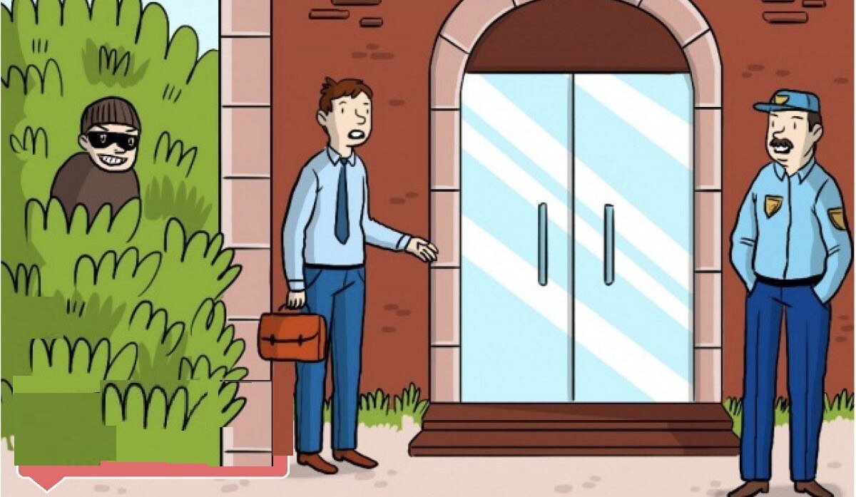 На входе в хранилище банка стоит охранник. Рядом притаился вор. Подходит к охраннику один служащий банка, охранник ему: "Шесть". Служащий в ответ: "Пять". Охранник пропустил. Следующий подходит - охранник: "Пять", служащий: "Четыре". Охранник пропустил. Грабитель смело направился к охраннику. Тот произнес: "Четыре", воришка торжественно ответил: "Три". Охранник тут же скрутил вора и вызвал