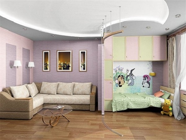 Квадратную или почти квадратную комнату разделить на зоны сравнительно легко. Проще всего зонировать комнаты, сложные по конфигурации. Уже само расположение капитальных стен и перегородок создает условия для создания зон в нишах и альковах. Декоративные решетки, прозрачные стеллажи, тонкие шторы или низкая мебель придадут вашей комнате уют и красоту.