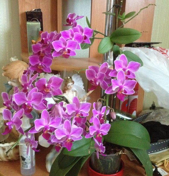 Это не первая моя статья про орхидеи, летом я писала про пересадку и про то, что орхидеи почти заменили в наших квартирах привычные раньше герани. И если Вы, уважаемая читательница (читатель) пропустили эти статьи, то в конце будут на них ссылки. А сейчас хочу рассказать про применение стимулятора для появления цветоносов и новых розеток у орхидеи. Сразу должна уточнить, что фотографии орхидей с результатами действия стимулятора, которые Вы увидите в этой статье дальше, меня слегка шокировали :)). Потому что сама я стимуляторы никогда не применяла. на стенку я обычно ставлю цветущие орхидеи, потом убираю на окно У меня на многих орхидеях регулярно образуются дочерние розетки. Но меня всегда мучил вопрос, который касается вот этой орхидеи, которая на следующем фото. Дело в том, что на ней ежегодно образуется по 6-8 "деток", иногда они даже цветут прямо на "материнском" растении : И я уже со всеми поделилась детками этой орхидеи, но она продолжает давать все новые розетки. Вот так у м