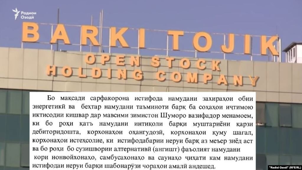 Распоряжение об отключении от электричества всех должников подписал замглавы компании «Барки точик» Мухаммадом