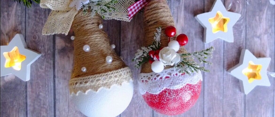 Существует несколько вариантов сделать такие украшения на елку – с шапочкой, дополнительными элементами декора или в минималистском стиле.