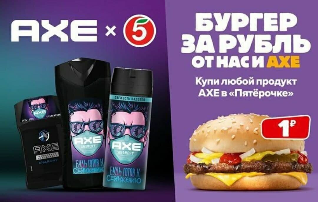Приобретайте в магазине «Пятерочка» любой продукт марки АХЕ, сохраняйте кассовый чек и показывайте его на кассе Burger King.