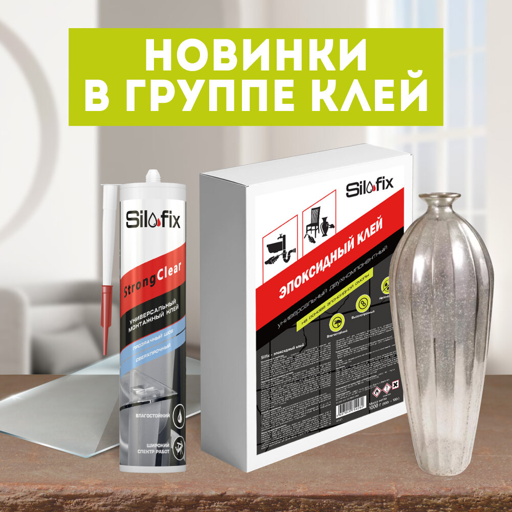 Уже сейчас мы готовы представить Вам несколько новинок — монтажный клей SILFIX StrongClear и эпоксидный клей SILFIX.