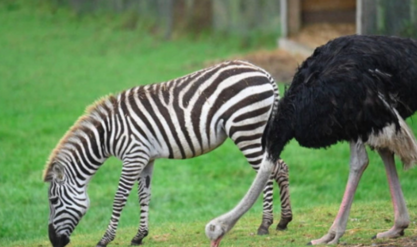 На свою партнершу самец не обращает никакого внимания, не помогают даже любимые им сладости. Зебры же напротив приняли страуса в свое стадо как себе подобного.