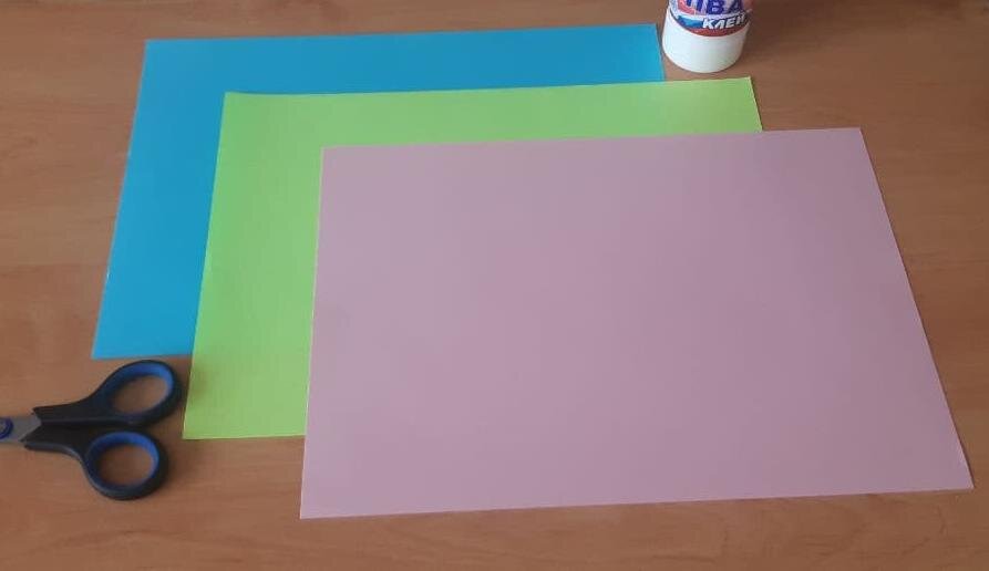 - Цветная бумага (у меня лист розовый, можно взять желтый, зеленый, голубой и немного белого);