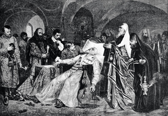 В 1583 году 53-летний царь Иван Грозный был еще крепок, хотя и страдал от разных недугов. Душевный настрой царя резко переменился в январе 1584 года из-за небесного явления. Как пишет Николай Карамзин, «в сие время явилась комета с крестообразным небесным знамением между церковию Иоанна Великого и Благовещения: любопытный царь вышел на Красное крыльцо, смотрел долго, изменился в лице и сказал окружающим: вот знамение моей смерти!» В скором времени здоровье Ивана Грозного ухудшилось — «внутренности его начали гнить, а тело пухнуть». Царь приказал собрать астрологов и колдунов со всей Руси и даже из Лапландии, числом около 60, чтобы они истолковали ему явление кометы. Те якобы предсказали монарху смерть 18 марта того же года. Болезнь прогрессировала, однако накануне роковой даты Ивану Грозному стало лучше. Наутро он тоже был бодр и собрался казнить астрологов, но те ответили, что день еще не кончился. Царь принял ванну, сел играть в шахматы, но внезапно упал и умер.