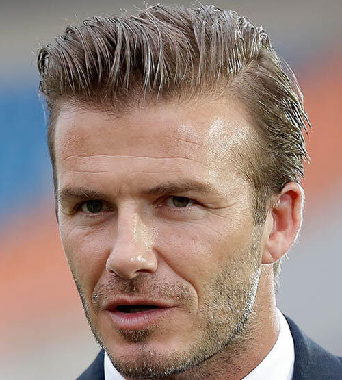 Дэвид Бекхэм больше всего известен своей зачесанной назад прической. В этом примере футбольная суперзвезда демонстрирует короткую стрижку по бокам с густыми волосами, зачесанными назад.