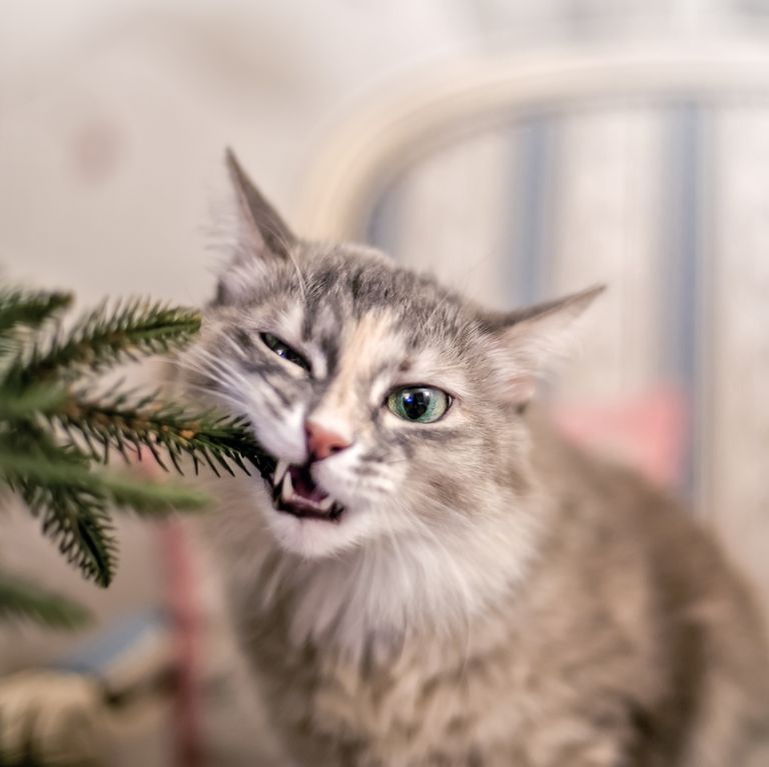 Сосна, пихта или ель - любое вечнозеленое растение содержит небольшое количество эфирных масел. Однако реальная опасность заключается в потреблении большого объема. Если ваш питомец пристрастился к деревьям (настоящим или искуственным), достаточное количество игл может образовать комок в желудочно-кишечном тракте и вызвать непроходимость.