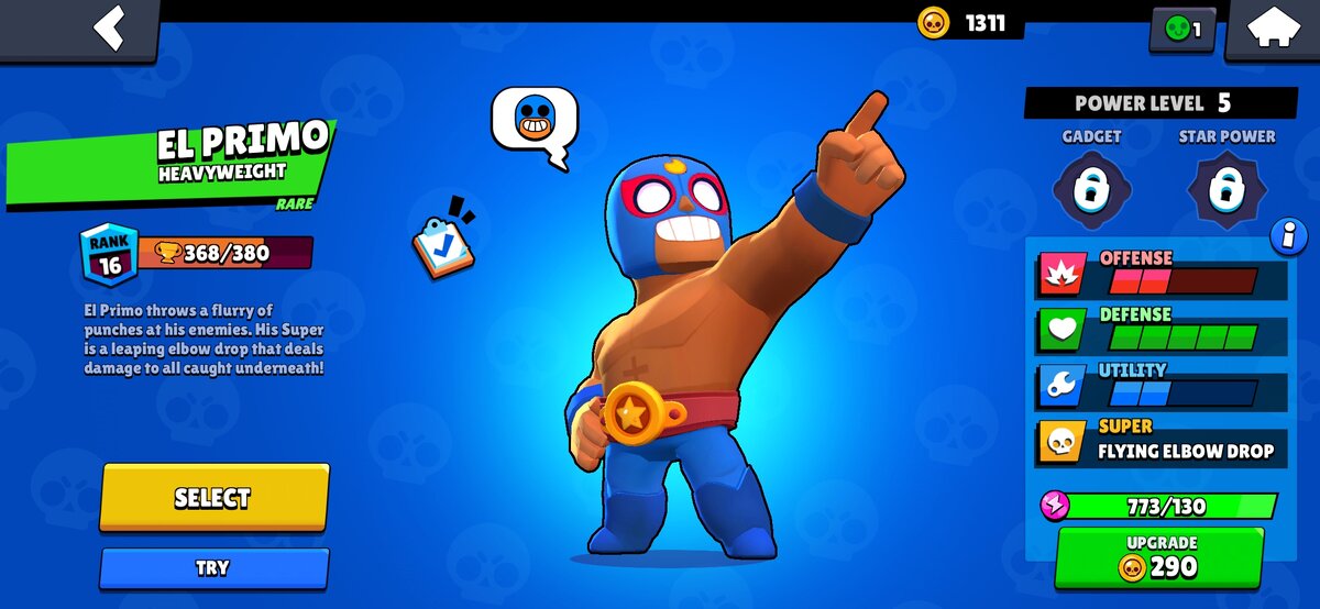 Начнем с того что эль примо-это ближник. У него огромное количество жизней и достаточно мощная атака (она является сплэшевой). Но несмотря на все эти преимущества, он является одним из самых слабых ближников, уступая лишь биби. Именно поэтому многие начинающие игроки не очень