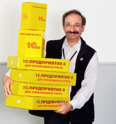 Такую расцветку основатель фирмы “1С” выбрал неспроста: это было сделано для того, чтобы коробки с программами “бросались в глаза” покупателю.