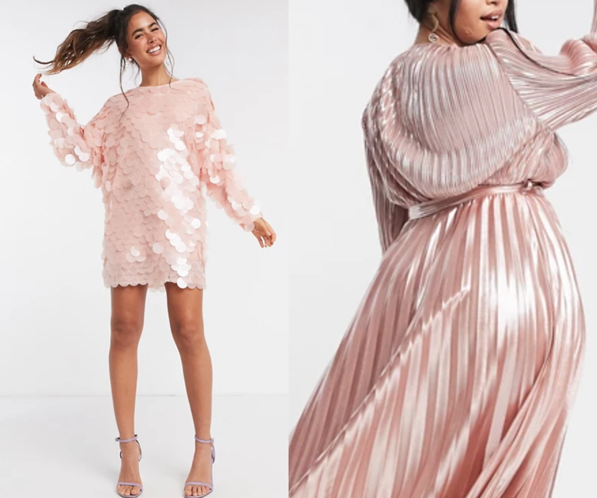 Если мелкие сияющие блестки всем приелись, то "чешуя" из крупных деталей вызовет волну восторга и комплиментов! А нежный оттенок и свободный крой, кажется, делают это платье идеальным)