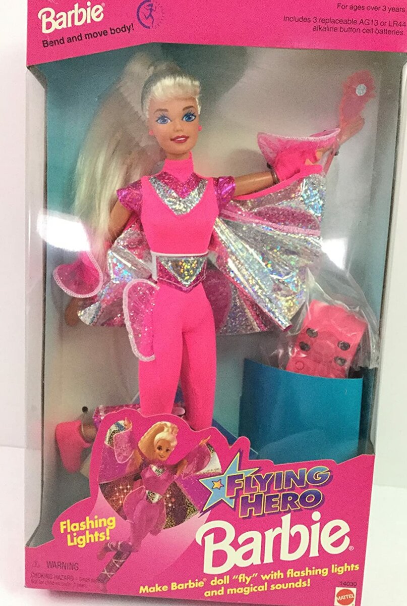 заставь куклу Барби "летать" с мигалками и волшебными звуками.