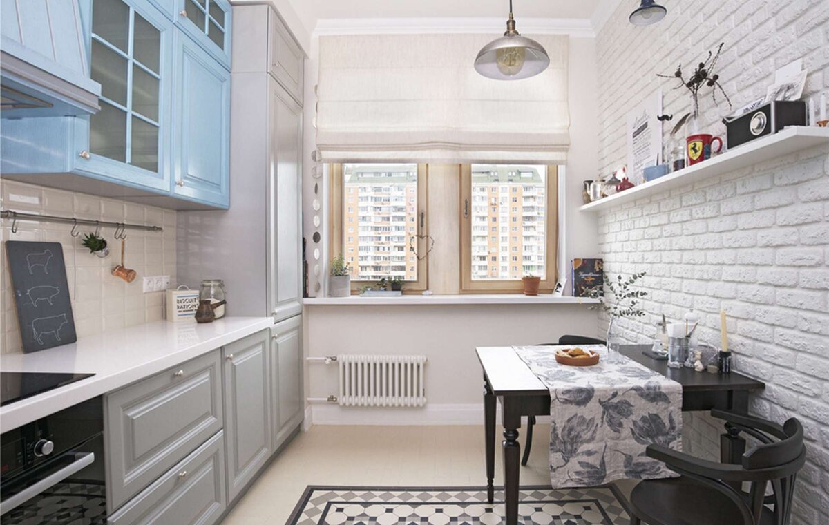 Декор может быть ярким пятном или акцентом в вашем интерьере, тем самым создавая контраст. Или может согласовываться с общей цветовой гаммой, вписываясь в нее. Также можно в рамках одной цветовой гаммы внести разнообразие за счет различных орнаментов, как это реализовала Ирина в своем проекте. Стены кухни декорированы кирпичом различной фактуры, но выбраны в основном белом оттенке интерьера.