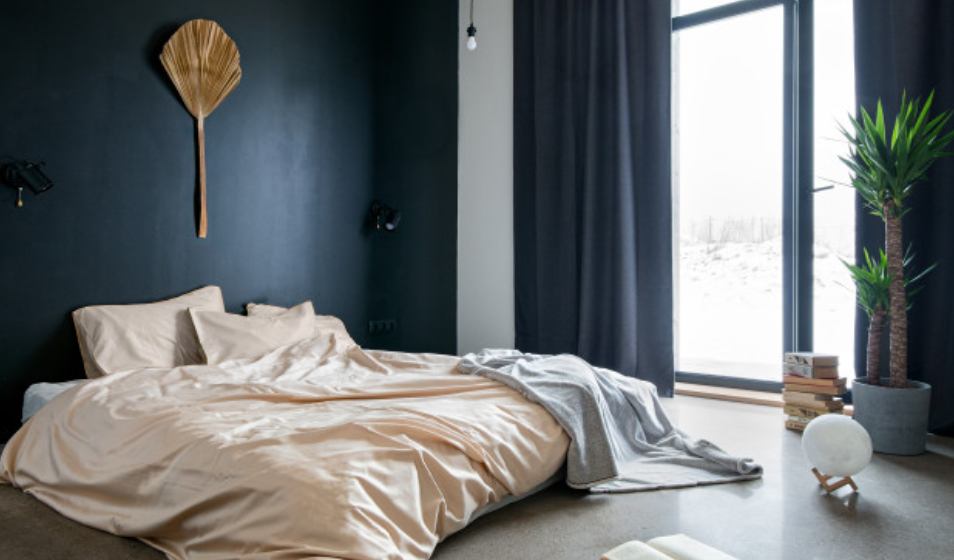 Чтобы визуально увеличить высоту потолка в комнате, можно обставить ее мебелью, прижатой к полу. Чем она ниже, тем больше пространства остается.