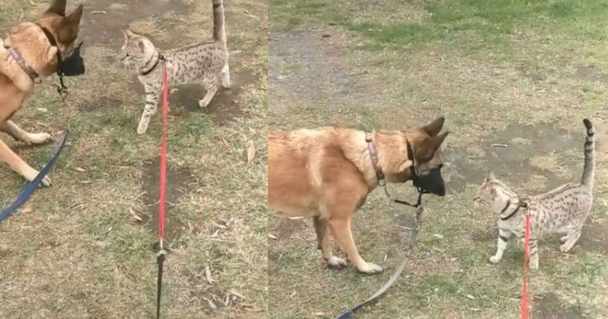 Использован материал: Watch: Dog meets cat on a walk and just can't believe it. Источник: wamiz.co.uk. Фото и видео: bastfuriends – TikTok