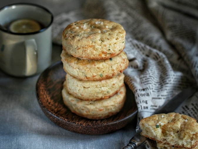Готовые сконы покроются хрустящей корочкой. Подавайте на стол теплыми, а не горячими. Они отлично сочетаются с салатом, йогуртом или обычным сливочным маслом.