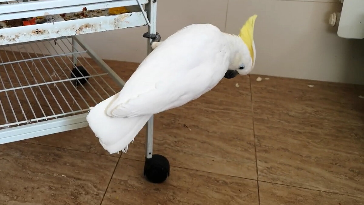 Мы, недовольные и непонимающие, что происходит, вышли на это кукареканье, пребывая в сонном ступоре. Наш Мандаринка сидел на своей специальной жердочке, стоящей у окна, и голосил во все горло. Когда он увидел нас, он замолчал. Немного посмотрев на нас, вытянул свою пернатую шею и замычал, довольно громко и протяжно.