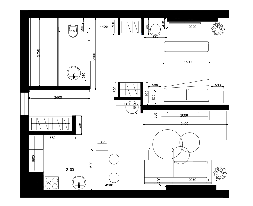 Небольшая квартира площадью 53,7 кв.м. Собственник просил сохранить две комнатны – спальную и гостиную.