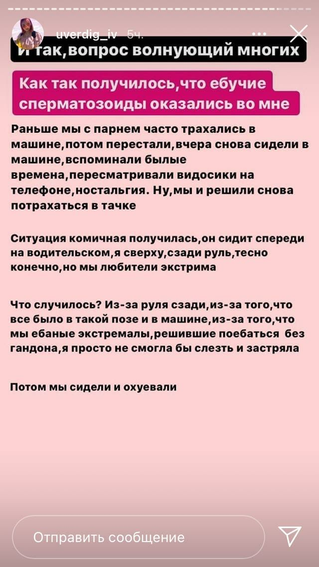 Как так получилось, что ебучие сперматозоиды оказались во мне? Мы ебанные экстремалы решившие поебаться без гандона» - Даша забеременевшая в 13 рассказала о своей половой жизни