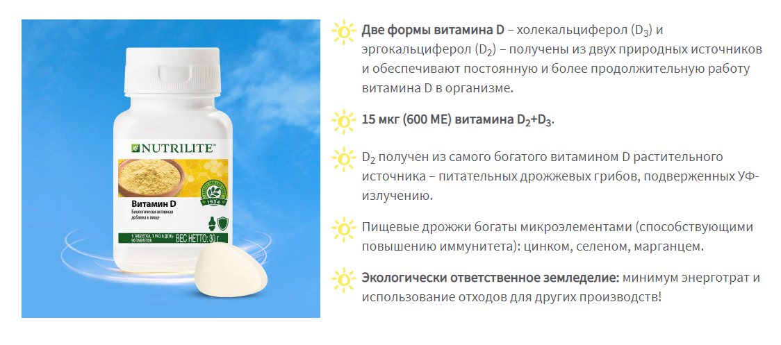 NUTRILITE™ Витамин D – комбинация D2 и D3 для более продолжительной работы важнейшего витамина в организме!