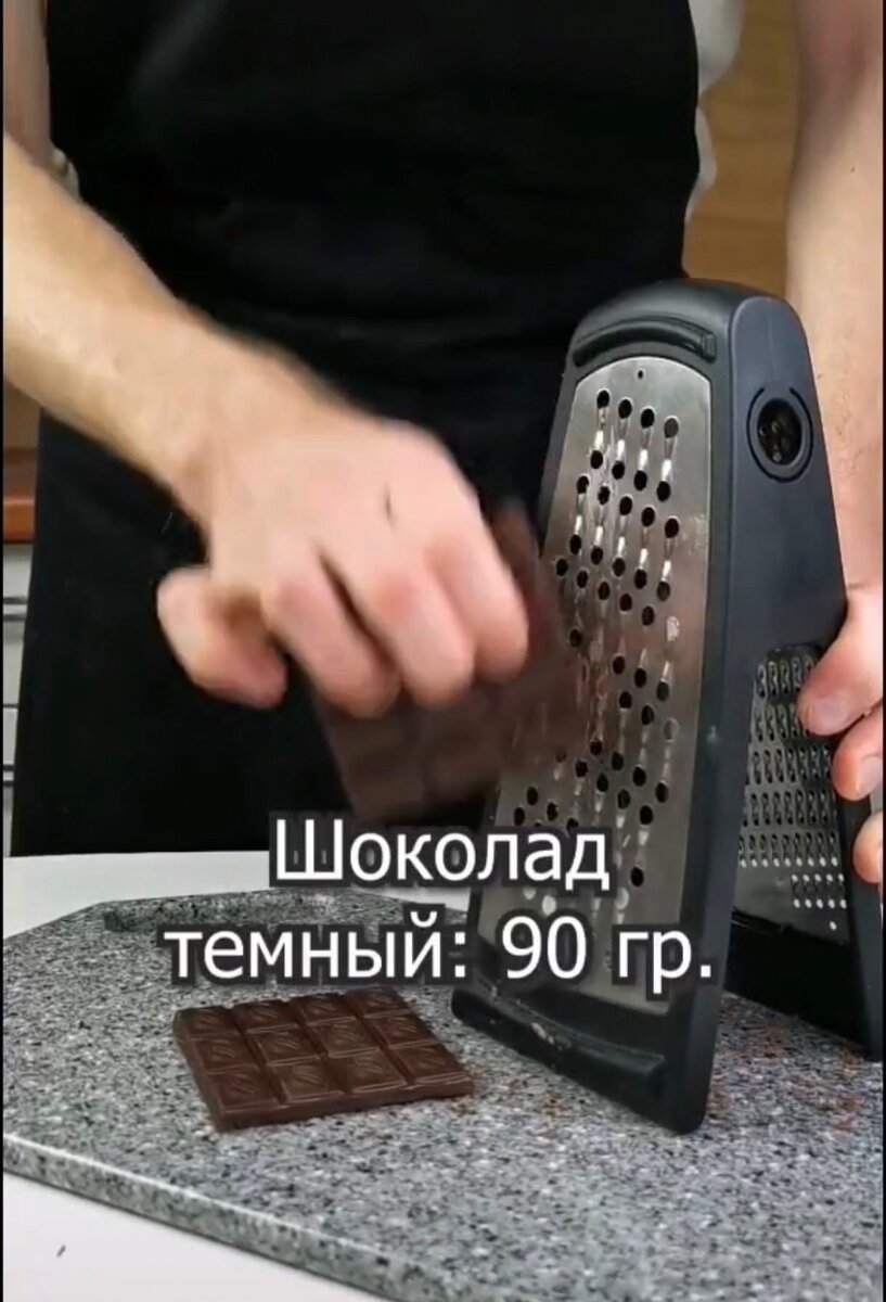 Первым делом натираем 90 грамм темного горького шоколада
