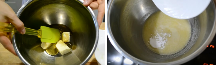 3.Снимите с огня миску, хорошо вымешайте заваренную массу и дайте ей остыть.