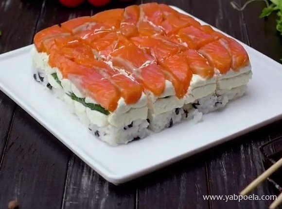 Как сделать простой суши-торт по типу знаменитых роллов "Филадельфия", таких же вкусных и сочных?