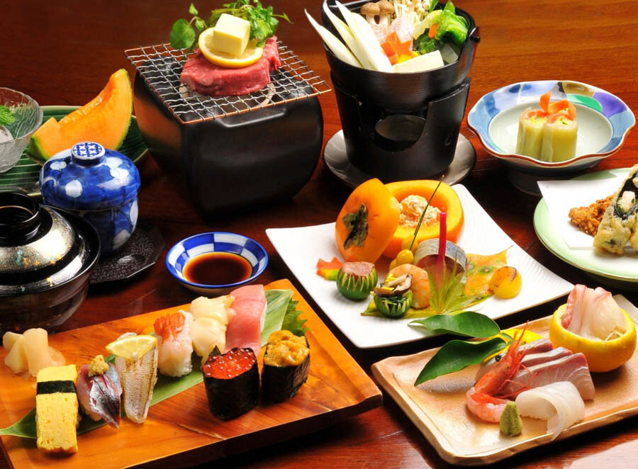 Одной из основ японской кухни являются морепродукты. В Японии их употребляют в различных видах: отварном с соевым соусом, приготовленным в кипящем масле, жареным на сковороде или открытом огне, сушеном, сыром, а также в виде различных колбас и сосисок. Здесь вы сможете попробовать тунца, горбушу, морского леща, креветки, кальмаров, осьминогов, моллюсков, каракатиц, устриц и крабов. В общем, все, что только пожелаете. Но национальной гордостью японцев считается сасими. Для приготовления этого блюда берутся кусочки рыбы нескольких видов, предварительно отделенных от костей и кожи и замораживают. После этого их выкладывают на поднос, украшают овощами и обильно поливают соевым соусом, также могут использовать васаби и японскую горчицу.