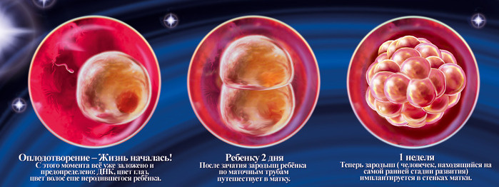 Первая неделя. Из маточной трубы оплодотворенная яйцеклетка в течение трех дней движется в полость матки. При этом в ней совершается сложная перестройка, и делящиеся клетки образуют шар. Попав в полость матки, яйцеклетка еще трое суток движется к месту прикрепления.