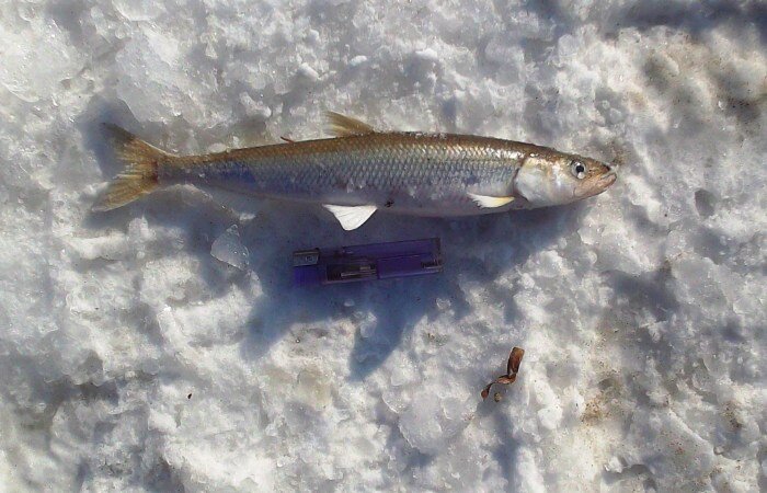 Долго пытался написать, да не получалось. Хотелось показать качественные снимки, но не получилось. Уж не обессудьте за качество фотографий. Но думаю — всё же понять можно. А блёсна мы будем делать вот на этого хищника — красавца, корюшка-зубатка, а по местному — ЗУБАРЬ.