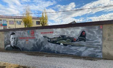 Граффити с изображением Героя Советского Союза, летчика-штурмовика Юсупа Акаева, появилось на стене, ведущей к историческому памятнику «Кавалер-батарея» по улице Д. Кумухского в городе Буйнакске, сообщает пресс-служба Минмолодежи РД.