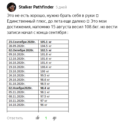 Ещё одна читательница написала что надо дорожить своим результатом по снижению веса. И это правильно за неделю жора откатилась на 3 недели назад! Обнулила свой труд. Спасибо Светлана за критику!