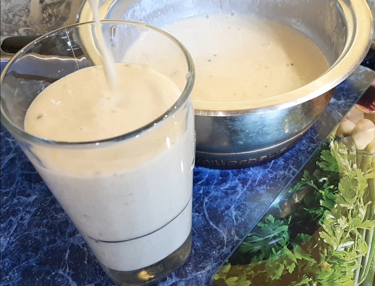 Так же вместе с фруктами можно сразу залить кефир, если чаша блендера вмещает всё это разом. В моём случае после измельчения фруктов, я соединяются в отдельной посуде фруктовую смесь с кефиром и взбиваю блендером.