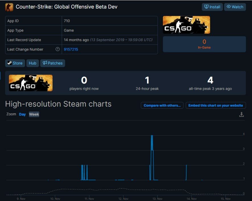 Недавно на площадке, где отслеживают активность в играх было замечено 4 разработчика CS:GO в сети одновременно. Версия для разработчиков называется Counter-Strike: Global Offensive Beta Dev.