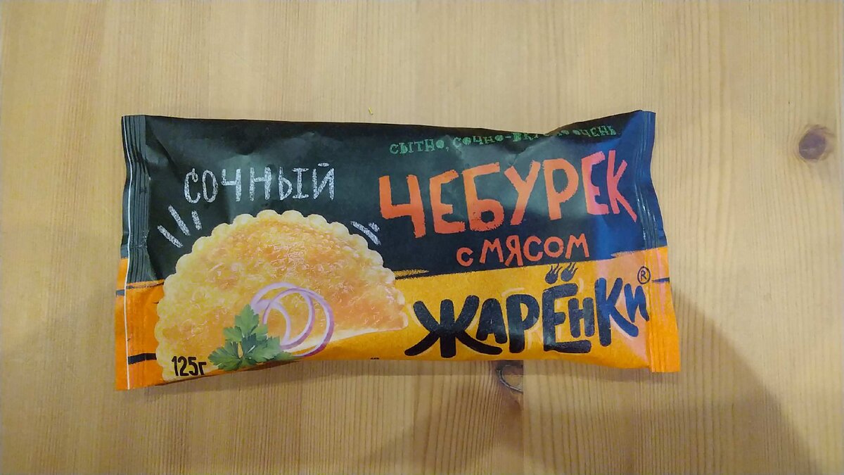 Сегодня в магазине «Магнит» увидел вот такой вот чебурек, а мне как раз захотелось чебуреков. Подумывал даже приготовить, но разводить канитель с маслом не хотелось. Ну, или если браться за приготовление, то уже сразу готовить несколько блюд, например, корн-доги. Упаковка симпатичная, цена не отталкивает. Обычно мы покупаем чебуреки во время прогулок с ребёнком.