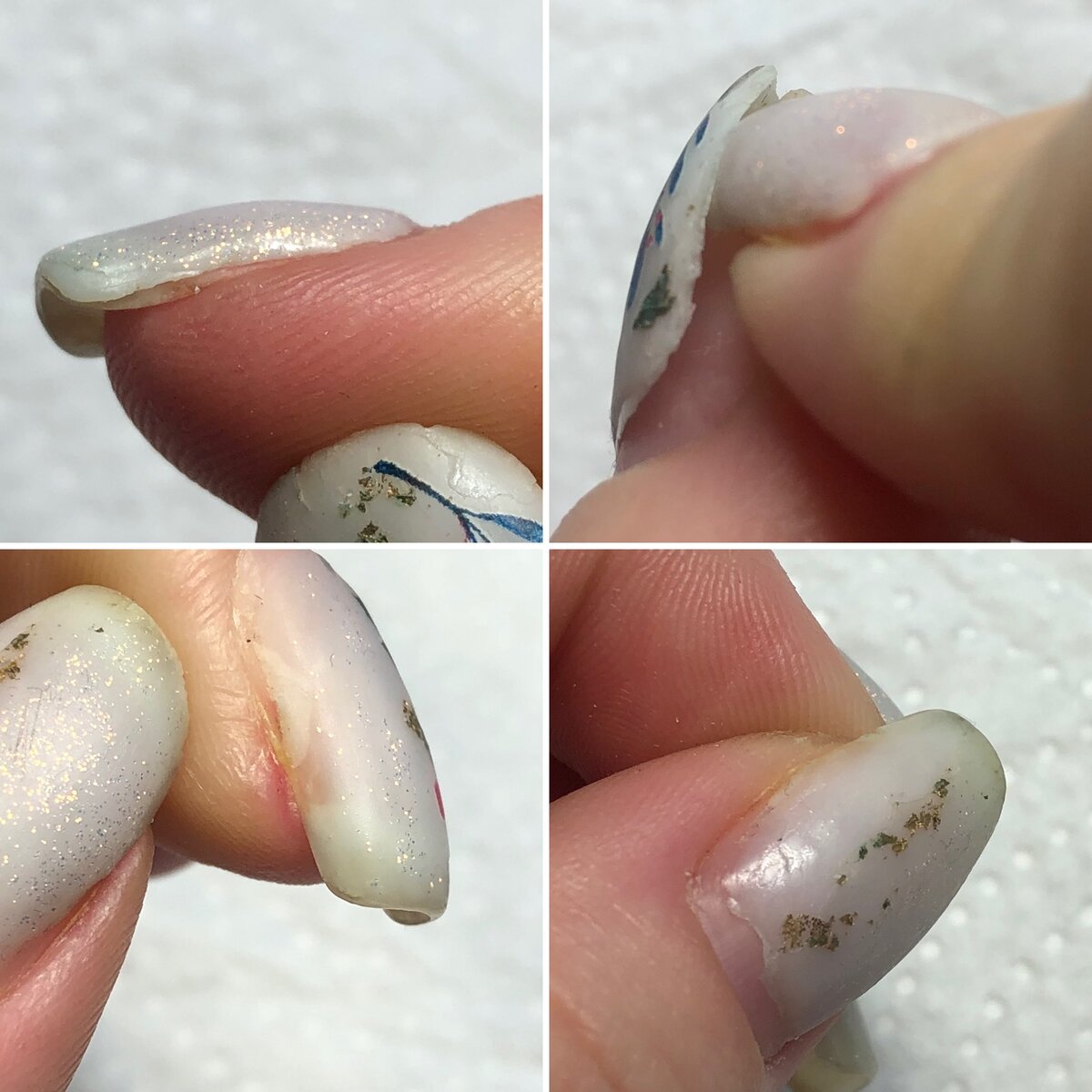 Сделав предыдущий маникюр, я совсем не ожидала столкнуться с отслойками... Для меня это были диким удивлением, когда через 5 дней я увидела на ногтях покрытие, которое, в прямом смысле отходит пленкой.