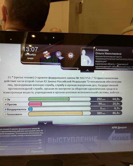 18 ноября в Госдуме фракция «Единая Россия» проголосовала за приостановку выплат военным пенсионерам в виде доплат в сумме 2-х процентов сверх инфляции. Это продолжается на протяжении многих лет. Всего 10 млрд. рублей необходимо для этого. Не нашли в бюджете. Зато с удовольствием пошли на налоговые послабления нефтегазовому сектору, госкорпорациям на сотни миллиардов рублей.