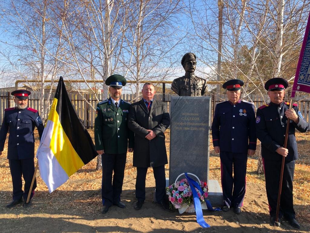 Тимофей Сладков — уроженец Уральска. Поставить памятник в Казахстане не получилось, поэтому его установили в ближайшем к границе населенном пункте — селе Красном.