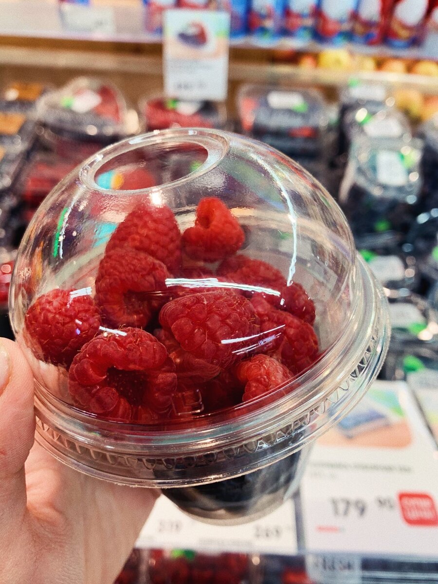 -свежие ягоды и обычные фрукты (яблоки, бананы и тому подобное)