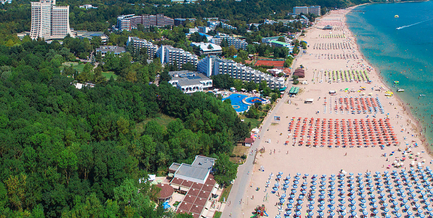 До Албены можно вообще дойти по пляжу за сорок минут. Ну, а если лень - за десять минут