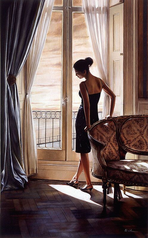 Она стояла полуобернувшись к окну. Ее взгляд смотрел вдаль. Но она чувствовала его пристальное внимание. Он с жадным интересом разглядывал ее гибкий стан. Облегающие платье подчеркивала красивую фигуру. Ее изящные руки плавно поправили волосы. Он хищно вдыхал ее мягкий цветочный аромат, наслаждаясь мгновениями счастья.
