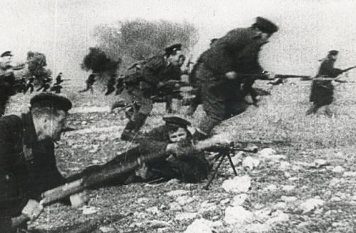 Затем он схватил какую-то дубину, выпрыгнул на головы врагов. Дубина разлетелась от удара по первому румыну, но и голова удара не выдержала. Богатырь настиг второго и поднял в воздух, переломил как полено. За ним следом бежал невысокий боец с ППШ и добивал врагов.