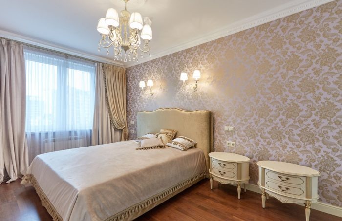 Так же еще одним важным критерием выбора обоев, является материал, из которых они изготовлены. Есть много видов, например, виниловые, бумажные, флизелиновые и текстильный. Для спальни лучше подойдет второй вариант, так как бумага является чистым и натуральным материалом. Обои из бумаги не будут выделять токсинов, и что само главное будут давать возможность стенам дышать. Такие обои держатся около 15 лет.