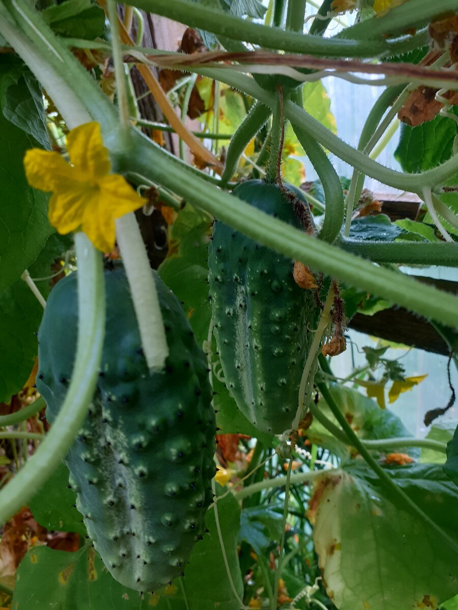Поэтому я для себя приняла решение не занимать теплицы огурцами. В теплицу посажу буквально пару кустиков для раннего сбора, а вот основные посадки для консервирования сделаю всё же в грунт. Единственное, что я отметила для повышения их урожайности, это - использование подвязки на шпалеры. Если огурцы плетутся по земле - толка не будет: плодики могут подгнить от дождя, не завязаться , вобщем - урожай сократится. На шпалере же плети прогреваются, проветриваются, но, конечно, формировка всё же нужна.
