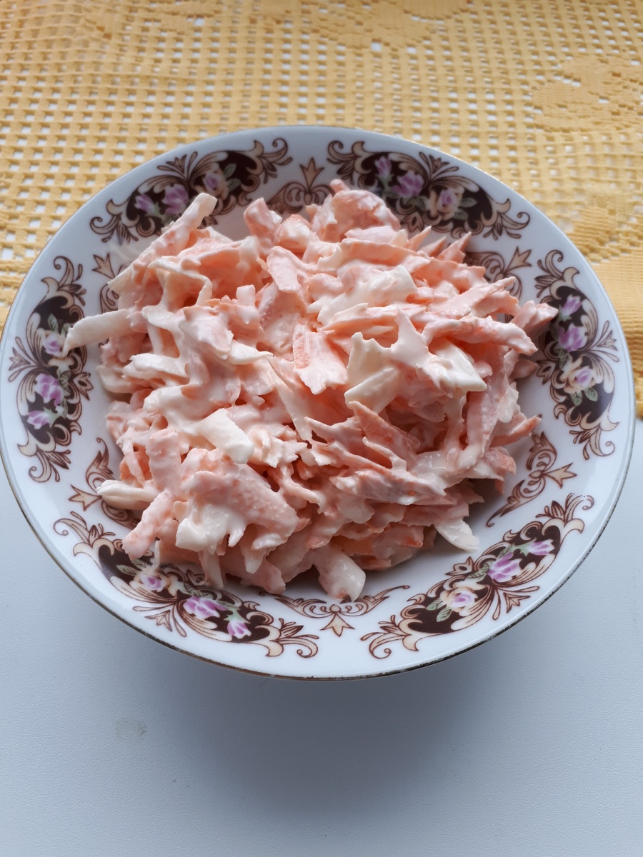 Свежую морковь, маргеланскую редьку натереть на крупной терке, добавить сметану, посолить по вкусу, перемешать и салат готов!!!