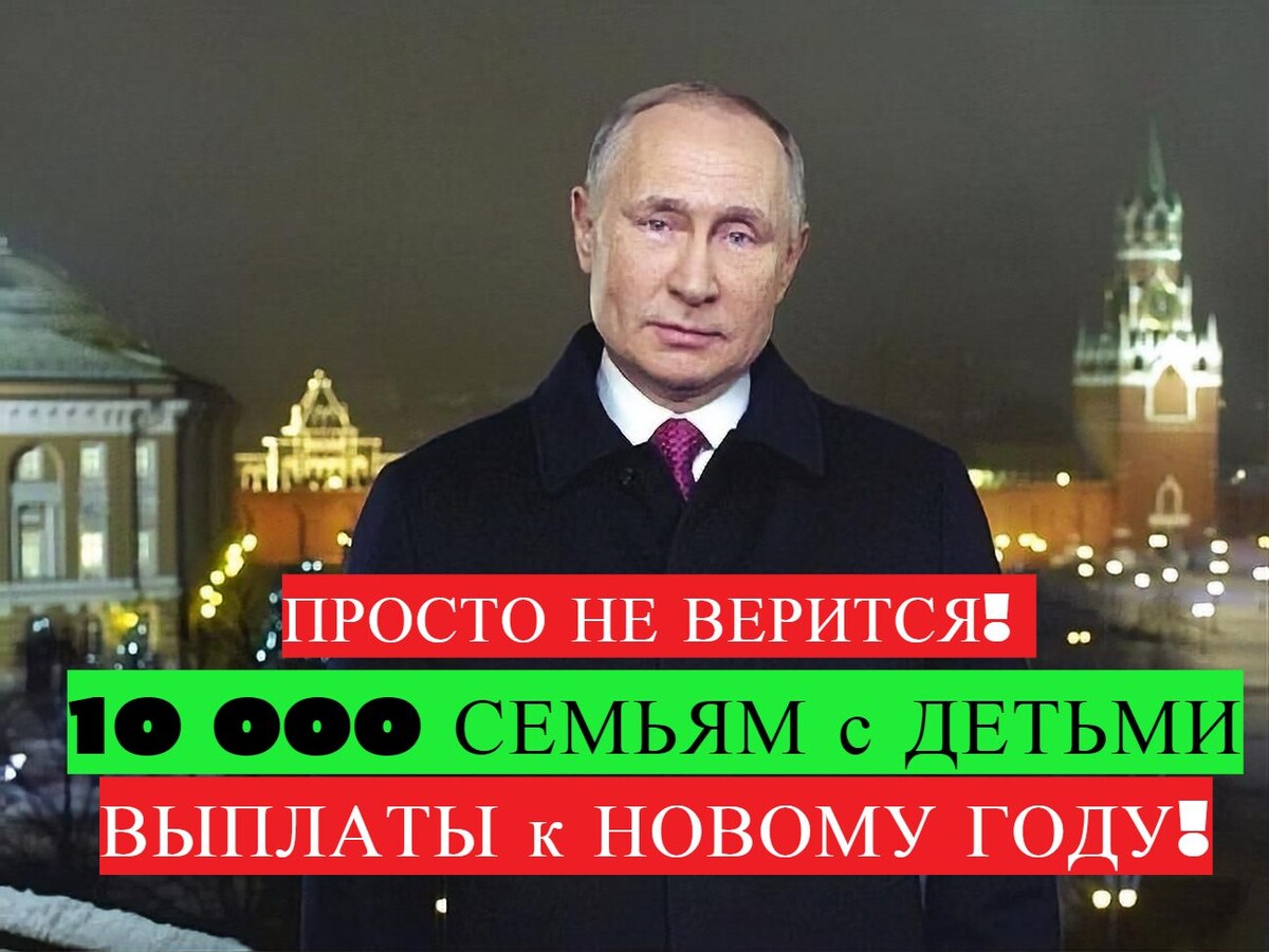 к НОВОМУ ГОДУ ВЫПЛАТА 10 000 рублей на ДЕТЕЙ до 18 лет ДЕКАБРЬ