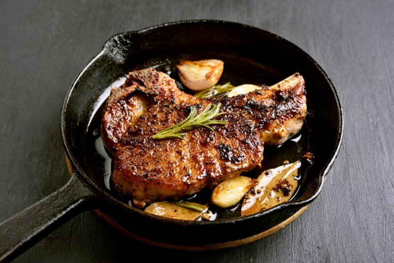 Мясо: жарение лучше всего подходит для более тонких кусков мяса, таких как стейки, свиные отбивные или котлеты для гамбургеров. Предпочтительнее нежные нарезки, потому что сухой жар быстро испарит влагу и высушивает мясо.