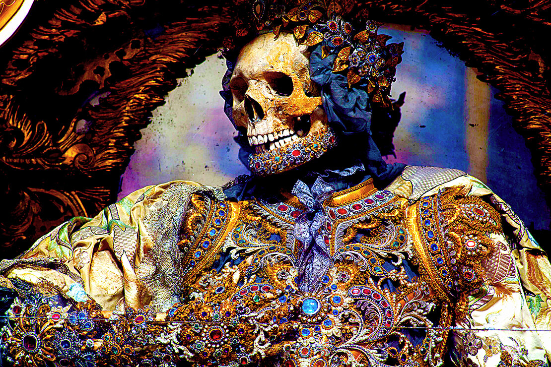31 мая 1578 года в Италии, при ремонте дороги на римской улице Виа-Салариа, рабочие нашли вход в подземные катакомбы. Катакомбы оказались заполнены множеством скелетированных и мумифицированных трупов, количество которых потрясло первооткрывателей. Нескольким сотням самых хорошо сохранившихся скелетов, из внимание, 700 тысяч обнаруженных, очень быстро нашли практическое применение. В Ватикане, узнав о находке, сразу же смекнули, что появился новый способ нести пламя веры по миру, а заодно пополнить казну. Никому не известно, каким именно людям принадлежали эти скелеты, но в резиденции папы решили так, что часть мощей наверняка принадлежала первым христианским мученикам, скрывавшимся в катакомбах.