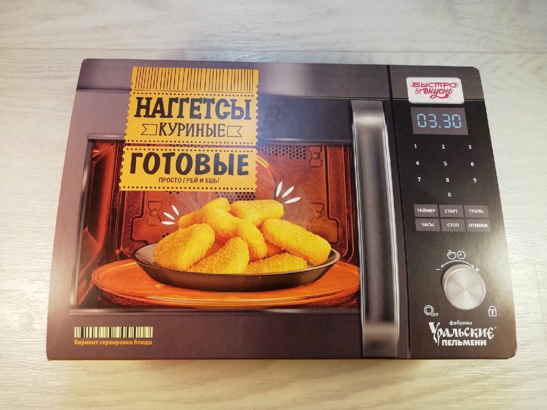 Продукт к употрблению готов, его нужно только разогреть. Производитель указывает время разогревания — 3-4 минуты. Но памятуя свой предыдущий опыт с чебуреками, когда я их за это врмя явно перегрела, я ставлю наггетсы греться на 2 минуты.