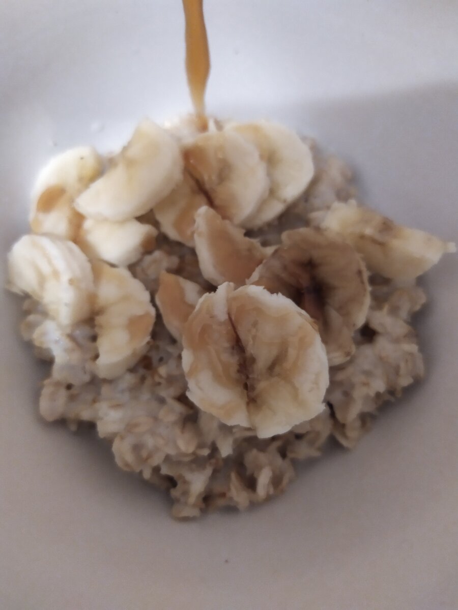 Завтрак. Захотелось овсянки. А с чем вкусно есть овсянку? Правильно! С бананом! По-моему это лучшее сочетание, еще для разнообразия добавила мед. Что с ним, что без него-особой разницы не вижу.